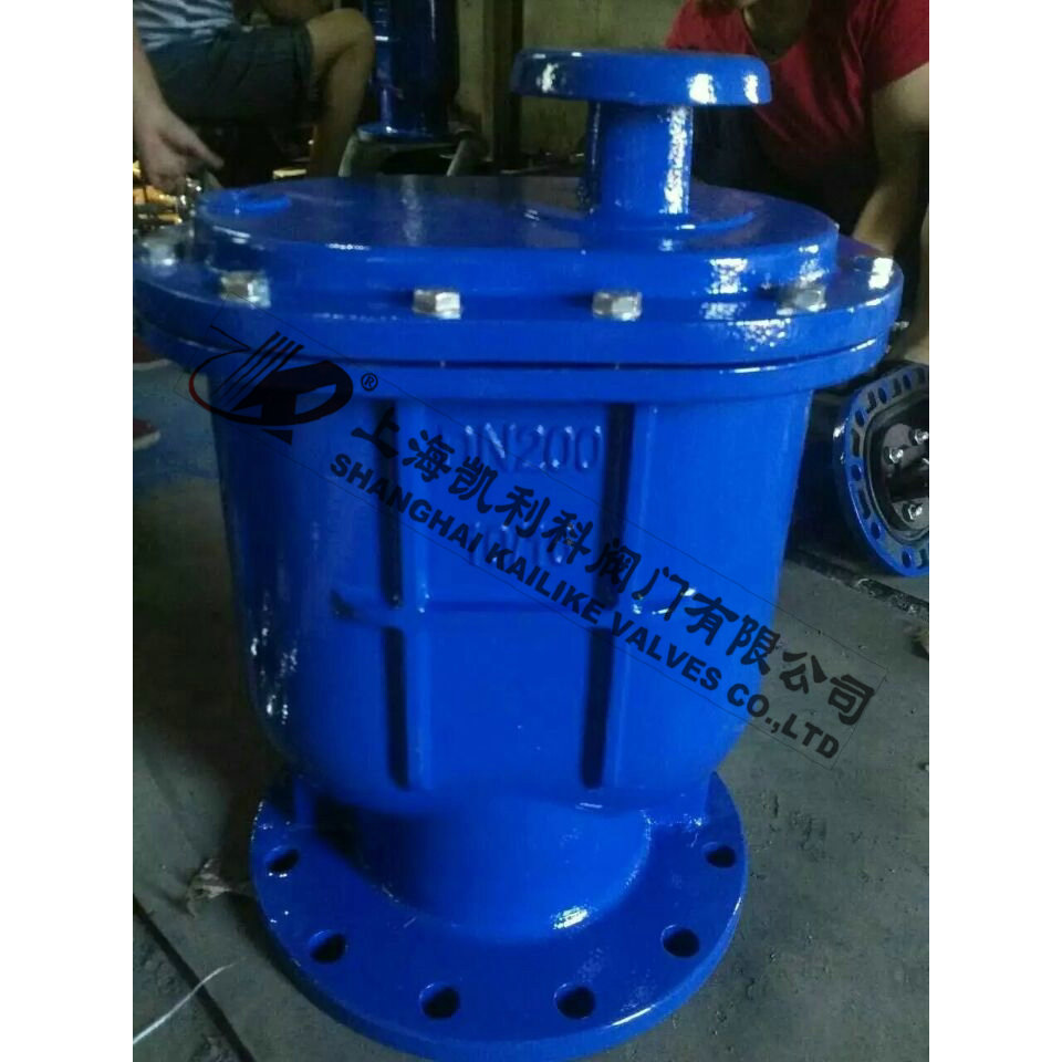 當(dāng)管內(nèi)開始注水時(shí),塞頭停留在開啟位置,進(jìn)行大量排氣,當(dāng)空氣排完時(shí),閥內(nèi)積水浮球被浮起,傳動(dòng)塞頭至關(guān)閉位置,停止大量排氣;當(dāng)管內(nèi)水正常輸送時(shí),如有少量空氣聚集在閥內(nèi)到相當(dāng)程度,閥內(nèi)水位下降,浮球隨之下降,此時(shí)空氣則由小孔排出。當(dāng)抽水機(jī)停止,管內(nèi)水流空時(shí),或遇管內(nèi)產(chǎn)生負(fù)壓時(shí),此時(shí)塞頭開啟,吸入空氣確保管線安全。